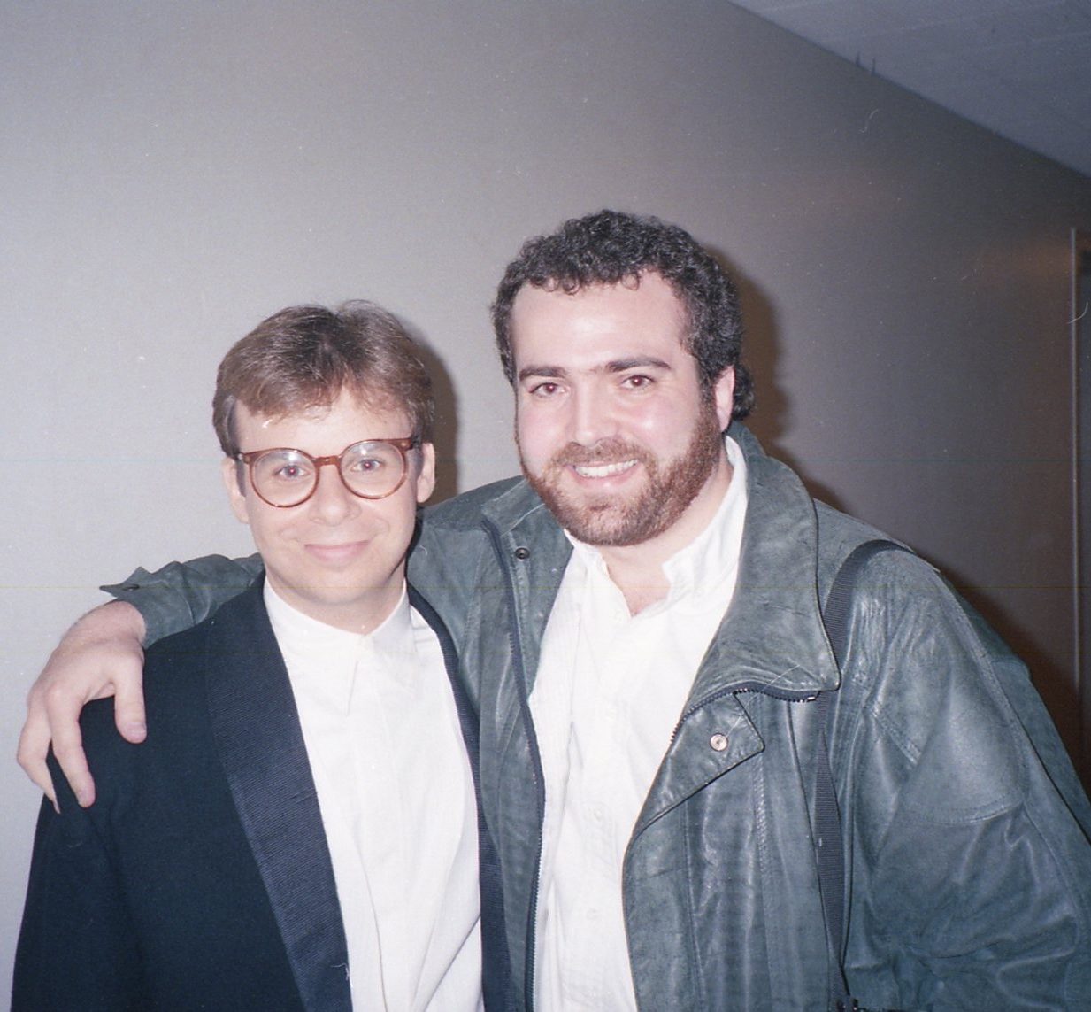 The person who took our photo that night was a comedy writer named Larry MacInnis, who had written Moranis’ JUNOS material. He asked if I could take a photo of him and Rick, which I did.